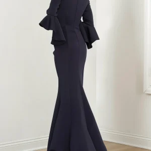 Custom trumpet mermaid v neck 3 4 sleeves mother of the bride dresses with ruffles