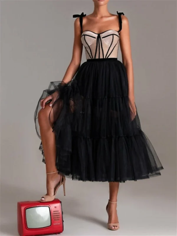 Hemline/Train: Tea-Length